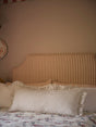 Striped Bolster Cushion with Frill - 90cm is backordered and will ship as soon as it is back in stock.