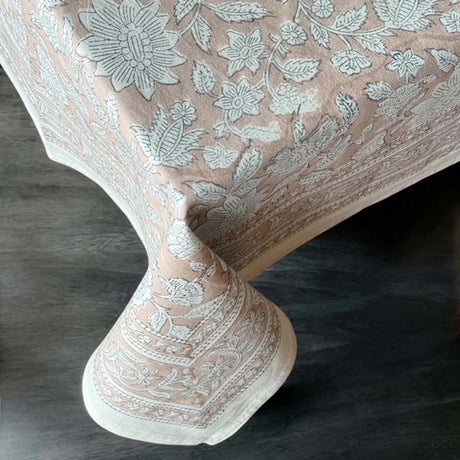 SOFT PINK HAND BLOCK PRINTED TABLECLOTH