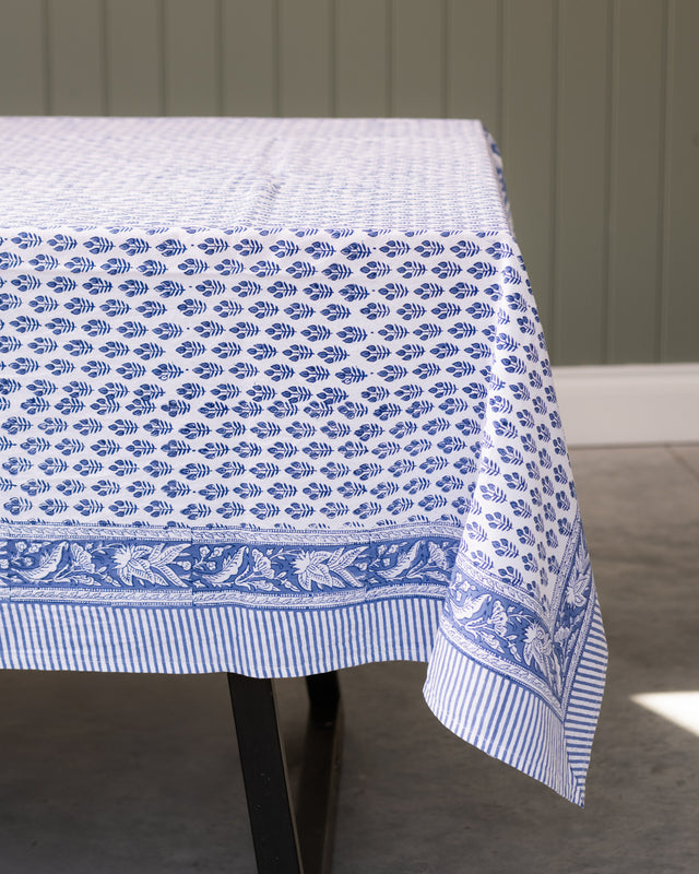 NEW - Samudra Cotton Hand Block Printed Tablecloth - 2 sizes available - Regular is backordered and will ship as soon as it is back in stock.