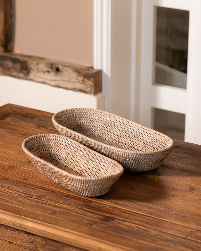SET OF 2 LONG OVAL RATTAN TRAYS