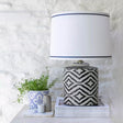 Ceramic Lamp Ikat Black With White Shade is backordered and will ship as soon as it is back in stock.