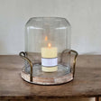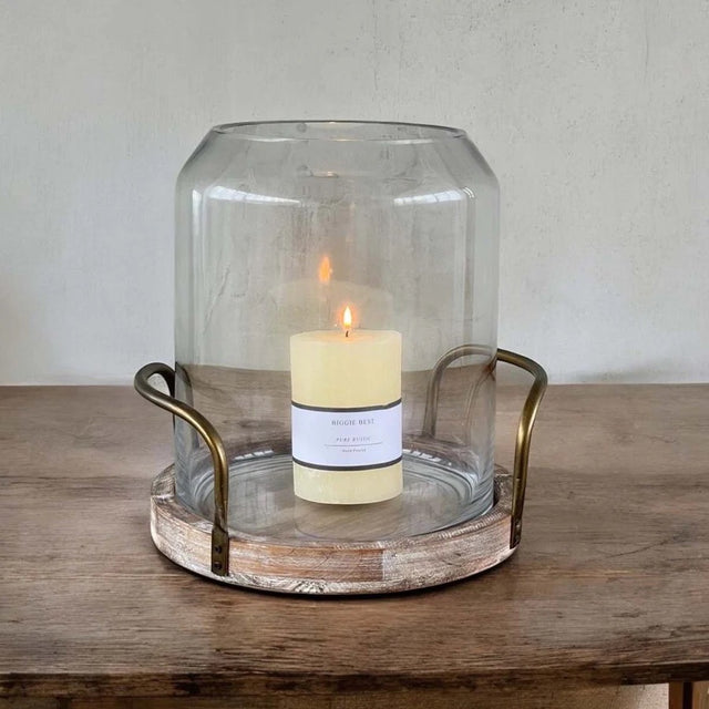 A stunning piece, this could have multi uses, a hurricane lantern or a terrarium with a lovely plant display. The wooden base sets this item off.