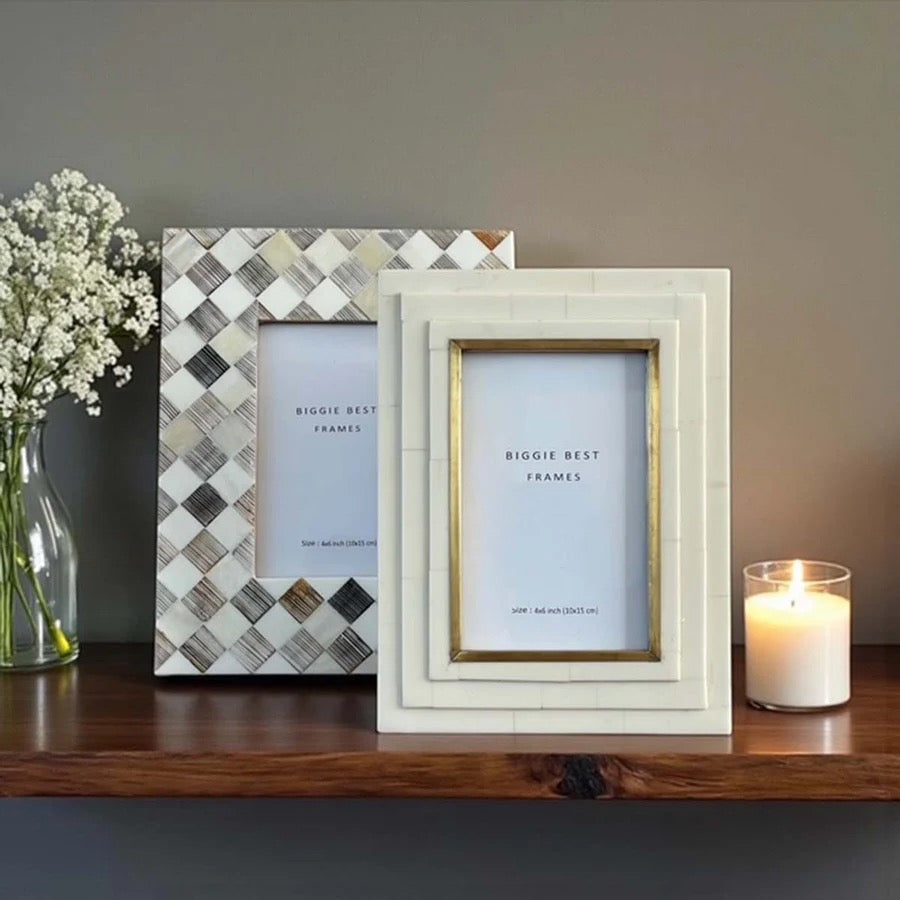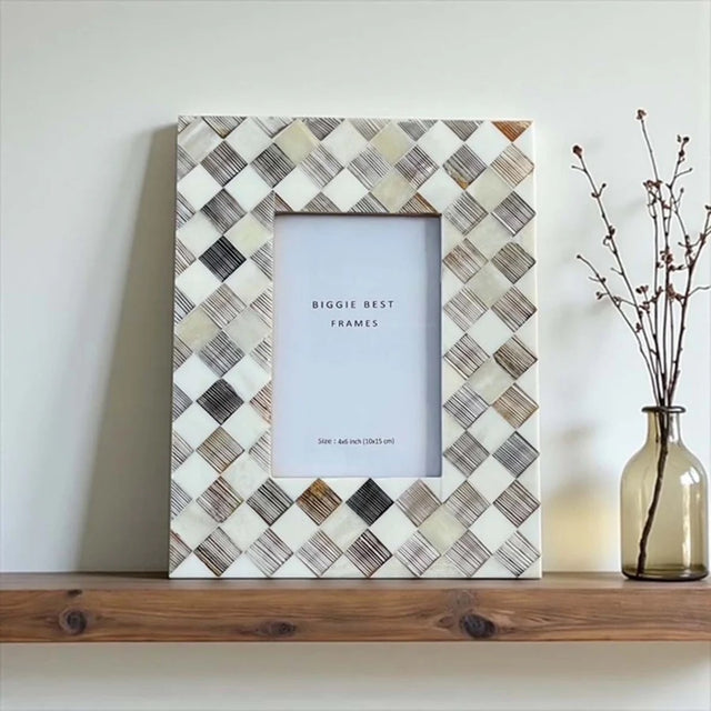 Faux bone inlay photo frame on wood