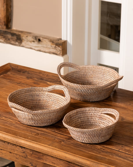 - SET OF 3 SMALL RATTAN ROUND BREAD BOWLS £6000Unit price /Unavailable