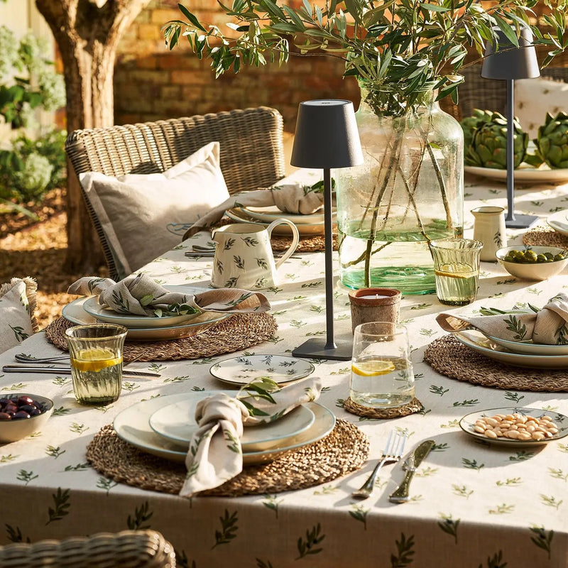 NEW- Whispers Cotton Hand Block Printed Tablecloth - 2 sizes