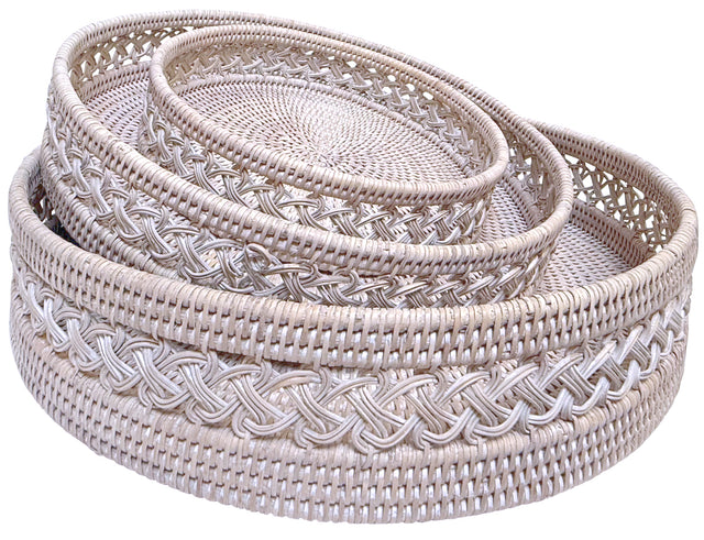 Round detailed Rattan Trays - 3 sizes - Large 48cm D is backordered and will ship as soon as it is back in stock.