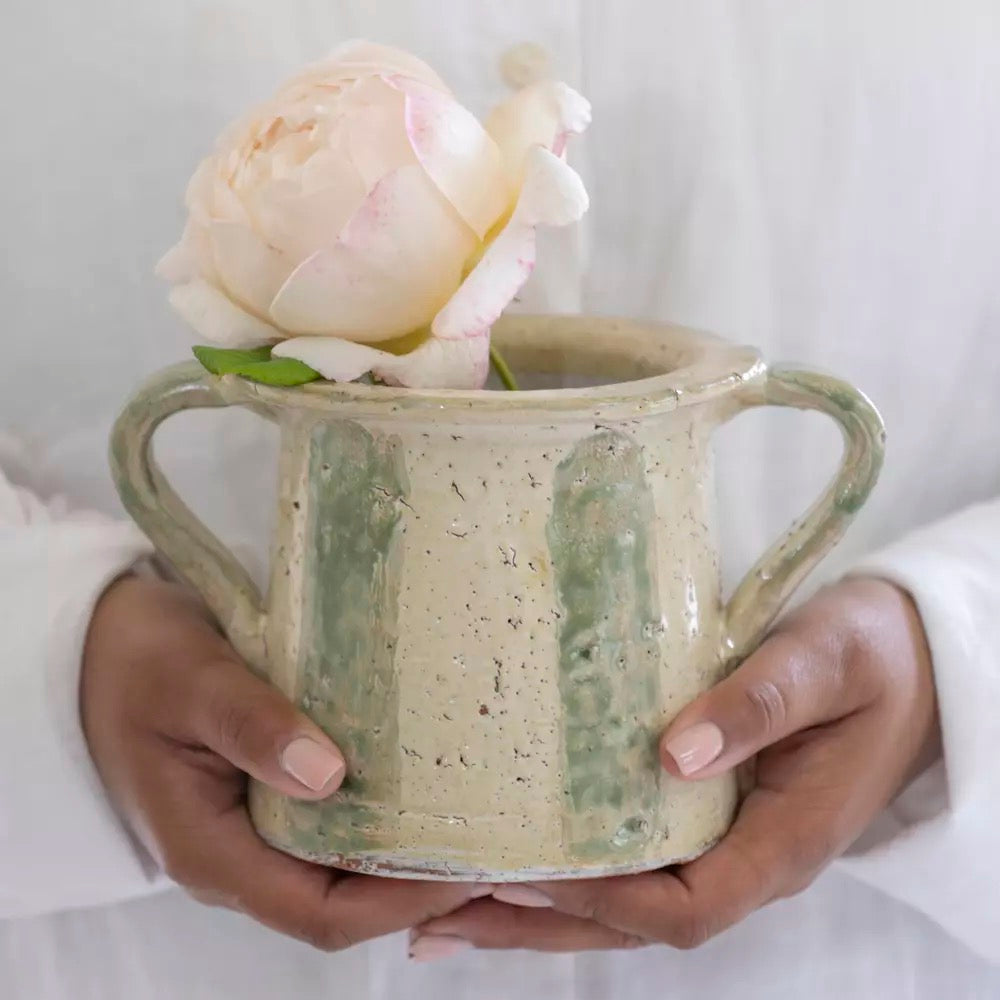 Pot With Handles Green Stripe Large